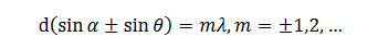 平面闪耀光栅原理如图所示,光栅方程为:
